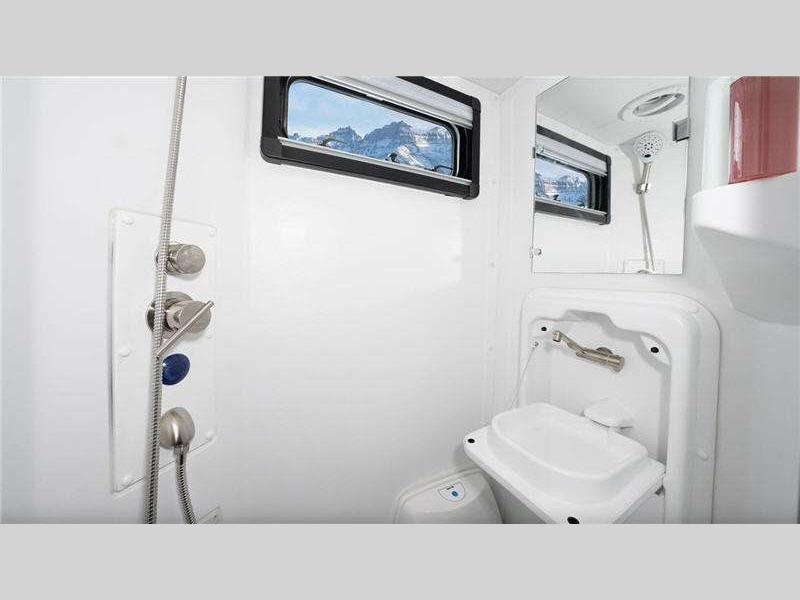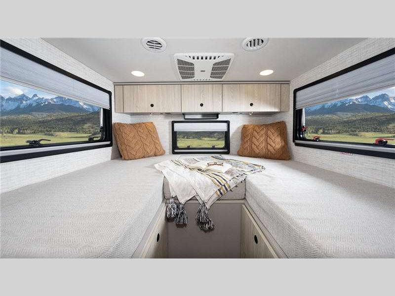 Two inch thick walls and enclosed holding tanks means you can enjoy longer camping seasons, and there is storage for all your gear. You'll also find a 360W roof mounted solar panel, a 3.9kWh 12V lithium battery, and a 2,000W inverter for all your off-grid and power needs. When you're not out exploring, you'll be comforted inside with cassette screens and night shades, an all-in-one wet bath, and comfortable twin beds that convert to a king-size bed!