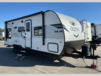 The Jayco Jay Flight SLX travel trailer is quite easy to own because it is lightweight for an easier towing experience. Built on a fully integrated A-frame with galvanized-steel, impact-resistant wheel wells, the Jay Flight SLX has quality at its very foundation. That quality continues on to the electric self-adjusting brakes, easy-lube hubs, Magnum Truss roof system, and LP quick connect. Some of what the mandatory Customer Value Package includes is backup camera prep, Keyed-Alike entry and baggage doors, and an on-demand tankless water heater.