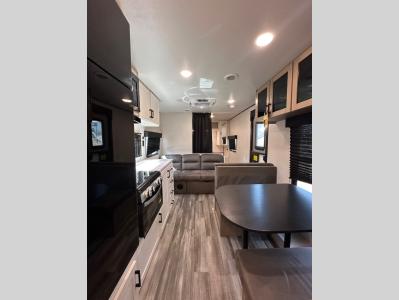 Sleeps 8 Length 29 ft 5 in Ext Width 8 ft Ext Height 10 ft 4 in Int Height 6 ft 9 in Interior Color Country Linen Hitch Weight 535 lbs GVWR 6800 lbs Dry Weight 4640 lbs Cargo Capacity 2160 lbs Fresh Water Capacity 84 gals Grey Water Capacity 39 gals Black Water Capacity 39 gals Tire Size ST205/75R14'D Furnace BTU 25000 btu Number Of Bunks 2 Available Beds RV Queen Refrigerator Type 12V Refrigerator Size 8 cu ft Cooktop Burners 3 Number of Awnings 1 LP Tank Capacity 20 lbs Water Heater Type On Demand Tankless AC BTU 13500 btu Awning Info 16' Electric with LED Lights Axle Count 2 Number of LP Tanks 2 Shower Type Tub/Shower Combo Electrical Service 30 amp Similar Travel Trailer Floorplans